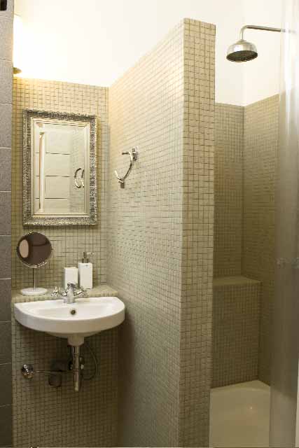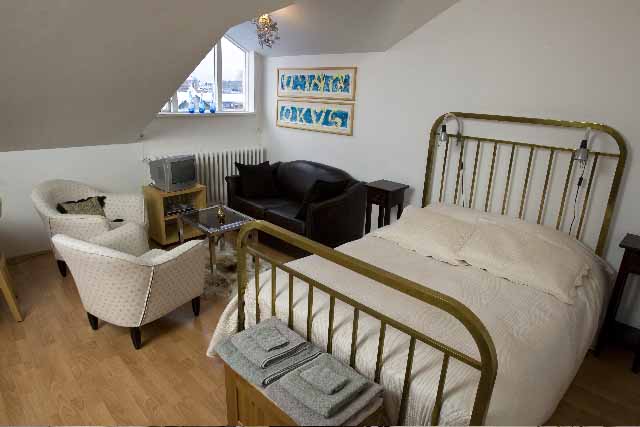 The apartment (third floor) is a beautifully renovated and furnished studio apartment with a fully equipped kitchen, TV, double bed, dining area and bathroom with a shower. Bedclothes and towels are provided.